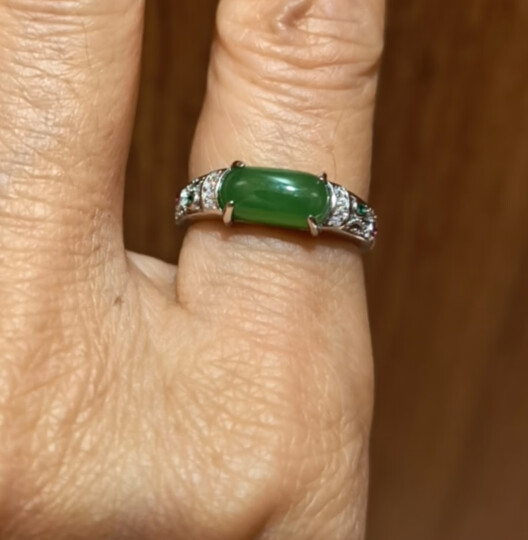 大小可调,整体漂亮,符合自己的想象,不知道是不是银和玉,戴着好看😄