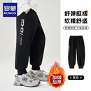罗蒙儿童裤子男童冬款儿童运动裤束脚卫裤校裤女童校园裤子黑薄绒140