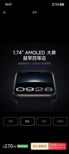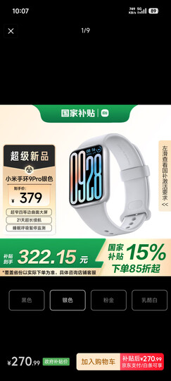 小米(MI)手环9Pro银色 智能手环 高精度运动健康 睡眠呼吸暂停监测 心率血氧监测运动手环送男友送女友