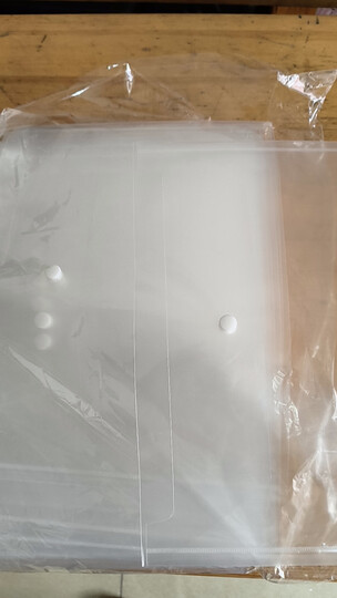 不是很薄的那种,但也不算厚,透明柔软,放a4大小纸张文件刚合适