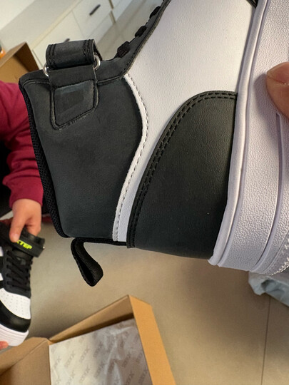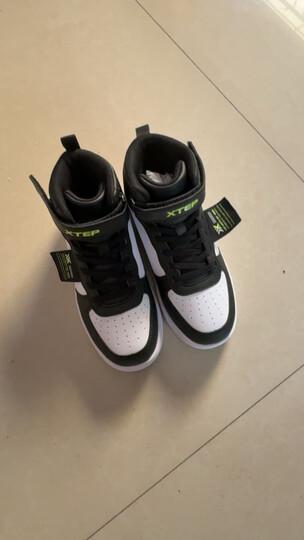 特步(XTEP)儿童童鞋中性学生时尚革面校园高帮板鞋 黑/新白色 34码