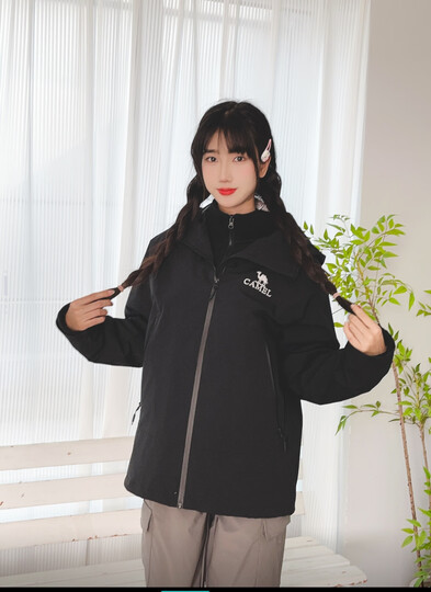 骆驼(CAMEL)冲锋衣硬壳单层男女外套中性风三防登山服女士短外套