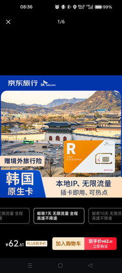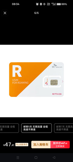 韩国上网卡电话卡流量卡5G/4G高速手机卡首尔 5天无限流量