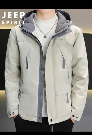 JEEP SPIRIT吉普羽绒服男白鸭绒秋冬季短款休闲外套男士保暖男装 米白 2XL