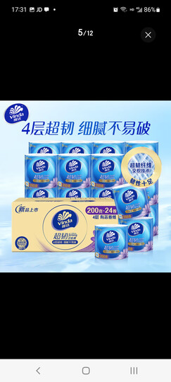 维达(Vinda)有芯卷纸【孙颖莎推荐】超韧4层200克*24卷 高克重卫生纸厕纸整箱