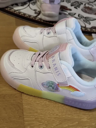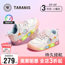 泰兰尼斯秋季儿童闪灯运动鞋女童可控开关板鞋防滑发光鞋白/彩色27码