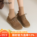 卓诗尼牛皮单鞋女春季棕色软底复古勃肯鞋系带百搭单鞋 灰绿色 37