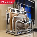 美厨物语厨房置物架刀架304不锈钢菜刀架锅盖砧板架筷笼收纳刀具一体架