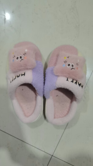 LA CHAPELLE HOMME男女宝儿童室内居家保暖软底可爱毛绒棉拖鞋 粉色 32-33