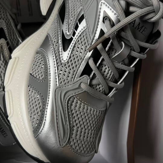 骆驼(CAMEL)银月户外复古老爹鞋厚底休闲鞋 L24A283742 灰/枪/黑 36
