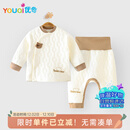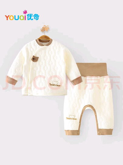 优奇婴儿衣服秋冬保暖宝宝高腰护肚夹棉打底衣分体内穿秋衣裤纯棉套装