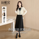 丝柏舍V领套装2025秋装新款女装V领外衫搭背心连衣裙两件套