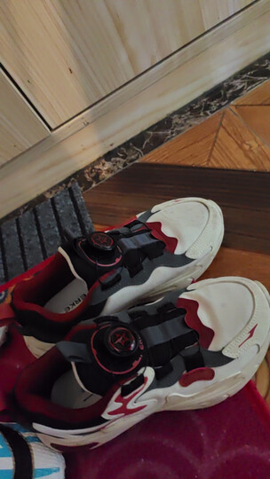 鸿星尔克(ERKE)童鞋男女童运动鞋儿童中大童旋钮扣休闲鞋暖亚麻/正黑37