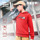 鸿星尔克(ERKE)童装男女童连帽上衣儿童大小童冬季保暖加厚卫衣东方红140