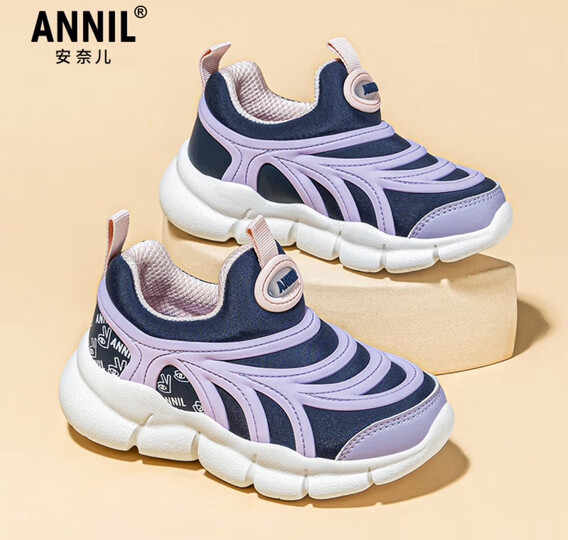 安奈儿(Annil)安奈儿童鞋网面鞋2025新款冬季透气宝宝儿童一脚蹬运动鞋 紫色 35