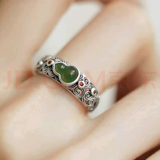 建禄和田碧玉石福禄银戒指单戒女士指环首饰品母亲生日礼物送老婆妈妈