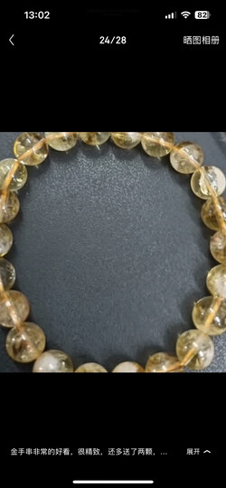 黄水晶看起来挺漂亮,多送了两颗珠子,回来编上金珠搭配更好看