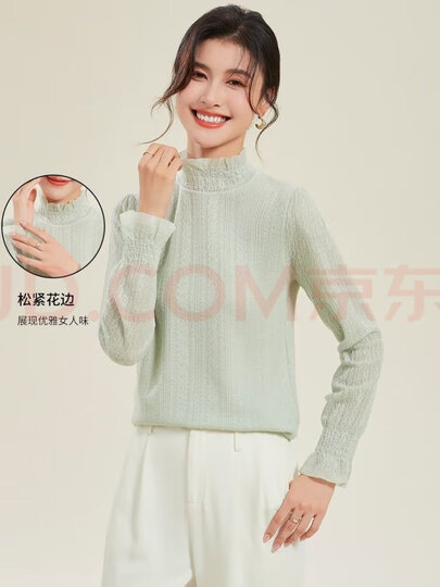金菊【含羊毛羊绒桑蚕丝】春季打底花边半高领镂空蕾丝女式针织衫毛衣