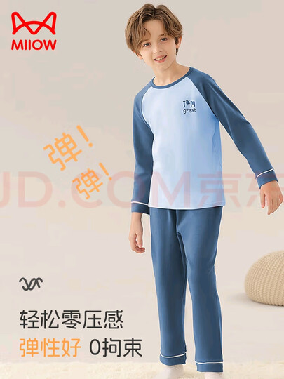 猫人儿童睡衣男女童【100%棉】春秋长款家居服套装中大童宝宝休闲套装