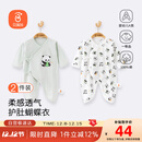 贝瑞加(Babyprints)婴儿连体衣2件装新生宝宝蝴蝶衣长袖护肚连身衣满月服 绿熊猫59
