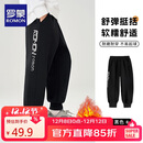 罗蒙儿童裤子男童冬款儿童运动裤束脚卫裤校裤女童校园裤子黑薄绒160