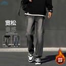 顶峰保罗(Dingfengbaoluo)美式牛仔裤男冬季高街直筒宽松加绒加厚阔腿长裤DFS05JR黑灰L