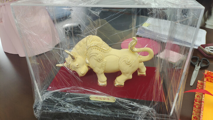 大明铜匠绒沙金鸿运金牛长约33*18.5*28cm