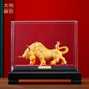 大明铜匠绒沙金鸿运金钱牛摆件客厅办公室玄关桌面铜牛高档开业乔迁礼品