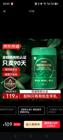 京东京造 有机纯羊奶粉800g 成人学生孕妇女士儿童中老年送礼