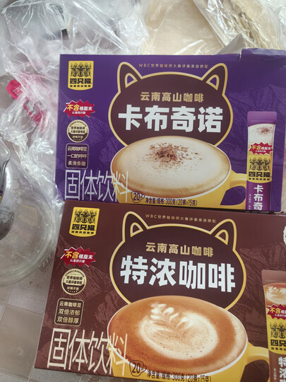 四只猫咖啡拿铁特浓蓝山卡布送搅拌杯 0植脂末 速溶三合一 冲调饮品 共1430g