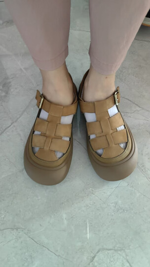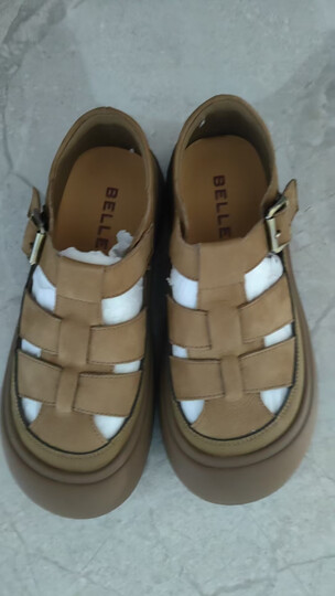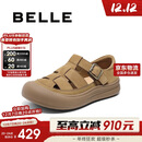 百丽时尚编织风罗马凉鞋2025新款夏商场透气休闲鞋D6T1DBK5 土黄色 37