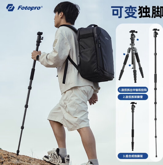 富图宝(Fotopro)小碳 便携收纳可变独脚碳纤维相机三脚架