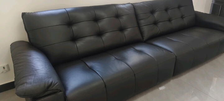 全友家居复古轻奢风头层牛皮沙发客厅家用大黑牛真皮艺一字直排式沙发