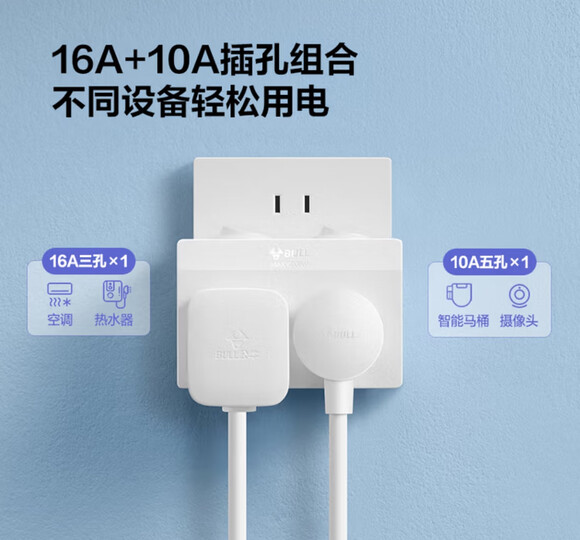 公牛(BULL)大功率一转二插座/一转多分控转换插头/电源转换器 2位分控开关无线转换插座 晨雾白 GN-Z9323D