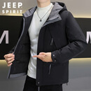 JEEP SPIRIT吉普羽绒服男白鸭绒秋冬季短款休闲外套男士保暖男装 黑色 XL
