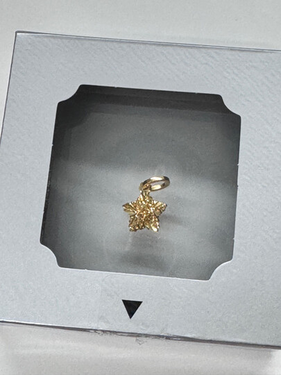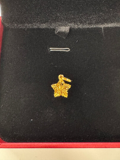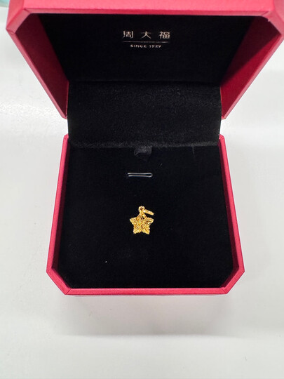 周大福从来没让我失望过,这个星星吊坠真的是太闪了,镂空设计,很精致,漂亮!不愧是热销单品啊。可以配上不同款式的链子,很百搭!