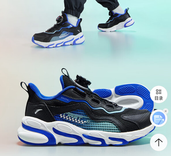 安踏儿童跑步鞋男女童2025秋季细网赤焰运动纽扣透气跑鞋A12435523J