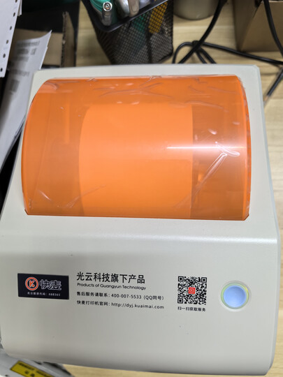 快麦118D热敏标签扫印刷,可以打印100X100打印纸,联接电脑简单而容易,加热后扫印出来字不会色,我们是做食品的放在冷库冷藏没问题,只有标签纸不会破字就会没问题的,值得信赖热叙打印。