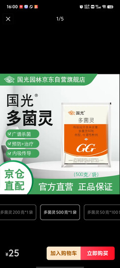 国光多菌灵杀菌剂花卉苗木水果蔬菜园艺叶斑病赤霉病通用杀菌500g