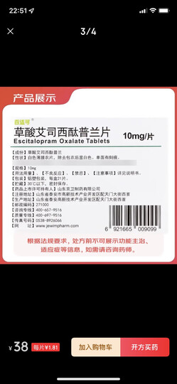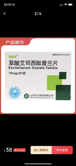 [百适可]草酸艾司西酞普兰片10mg*21片/盒