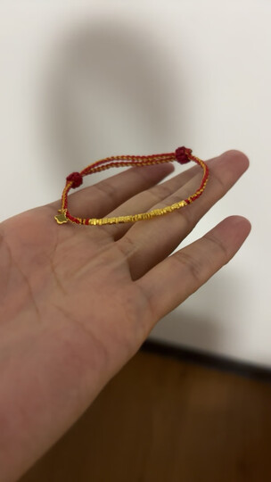 细细一条日常好搭配,包装也还不错送人也拿得出手,红绳编的略硬戴上舒适感一般般换个软点的就好了也许戴一段时间旧了就好了吧。