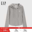 盖璞女装2025春季新款logo弹力罗纹拉链连帽长袖T恤常规上衣729465