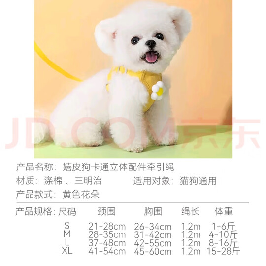 嬉皮狗小狗狗牵引绳背心式遛狗绳子小型犬胸背带狗链子 M码 建议4-10斤