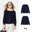 纳维凯尔(Navigare)女童毛衣秋季儿童针织衫中大童毛衫开衫外套新麻花开衫深蓝165