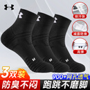 安德玛(Under Armour)袜子【3双】篮羽毛球运动袜男女跑步中防臭加厚筒毛巾短棉袜