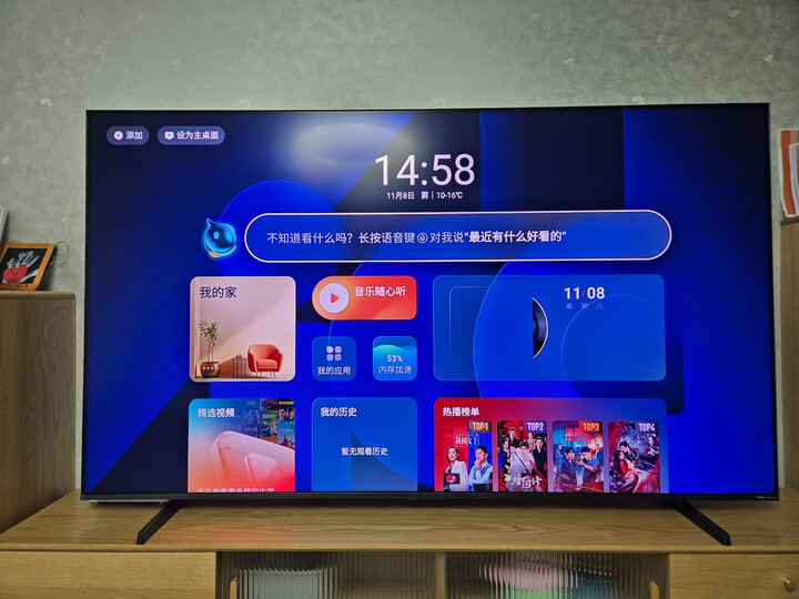 电视颜值非常高,75寸很大很薄,显示效果很惊艳,2.1.2帝瓦雷音效比普通电视好的多,物流也很快,送货上门并且安装好,五星购物体验!