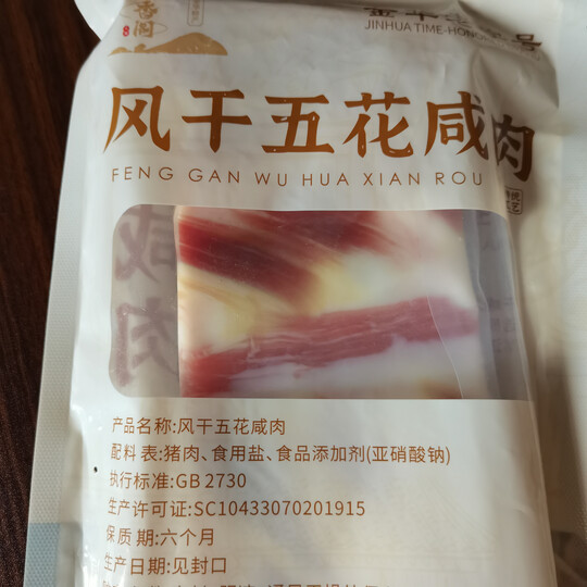 这个五花咸肉还可以,比有些其他品牌的贵一点点,五花肉就是正正板板的那种。切片生炒出一点油后加开水煮一会儿,下香茹、豆皮、白菜再煮一会儿味道好极了。