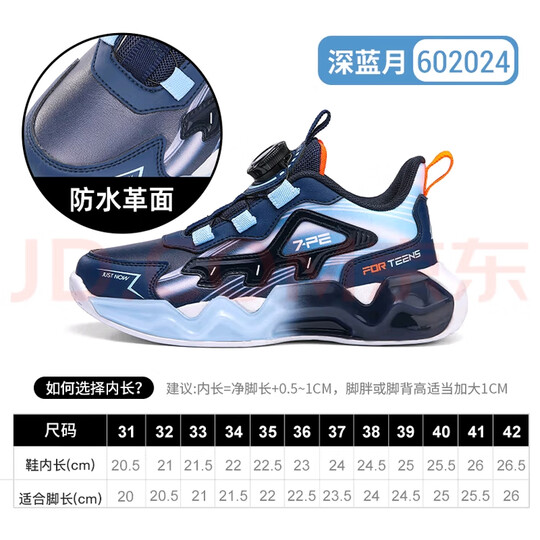 七波辉男童运动鞋儿童鞋子2025秋冬季新款青少年中大童跑步鞋男孩皮面鞋