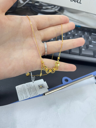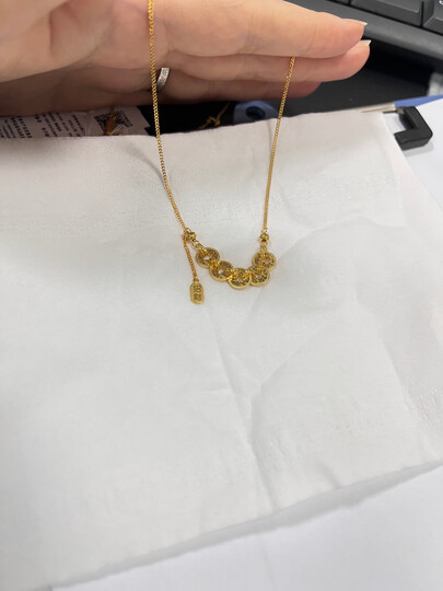 周六福五帝钱黄金项链女足金吊坠生日礼物计价A0615182 约5.53g 40+5cm