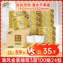 清风(APP)抽纸 金装3层100抽24包S码 整箱纸巾 面巾纸 擦手家用软抽卫生纸